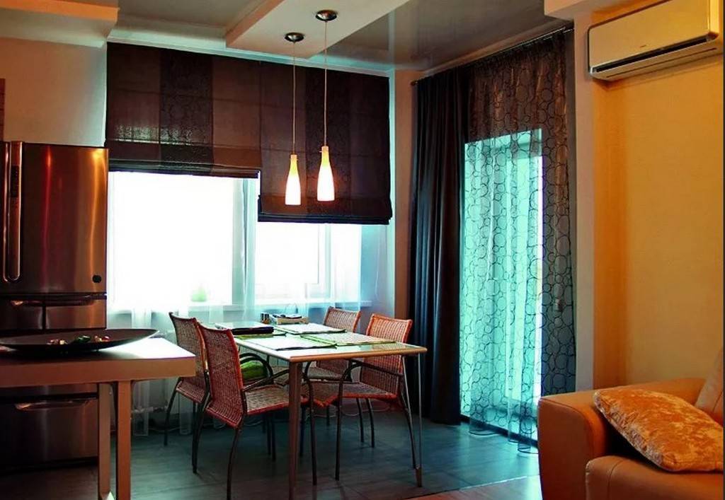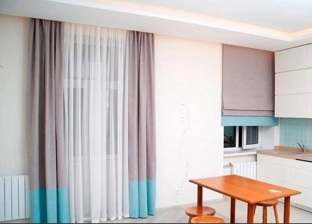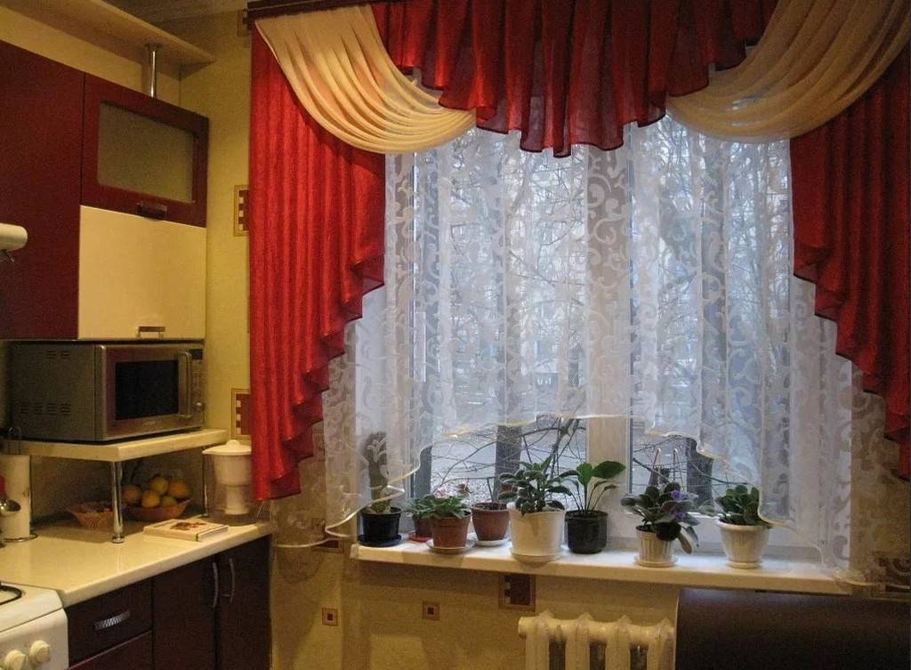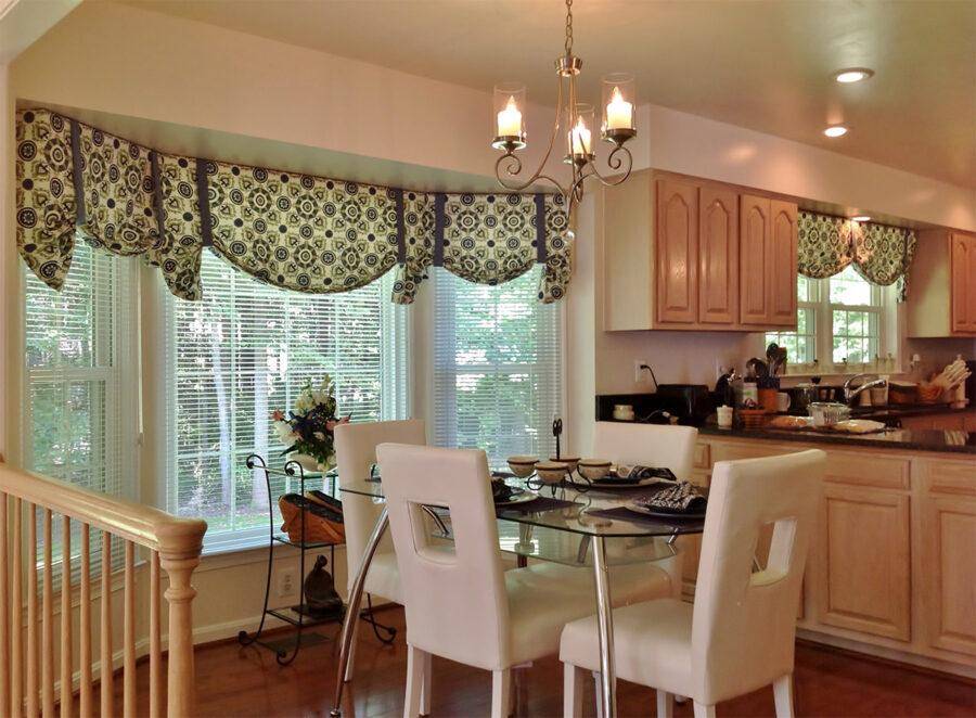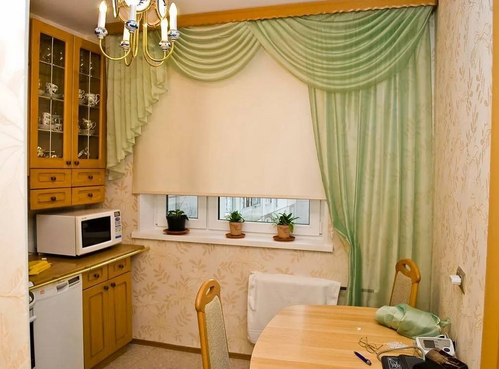 Соблюдайте правило пропорций: чем меньше ваша кухня, тем более лаконичным и сдержанным должен быть ламбрекен на портьере.