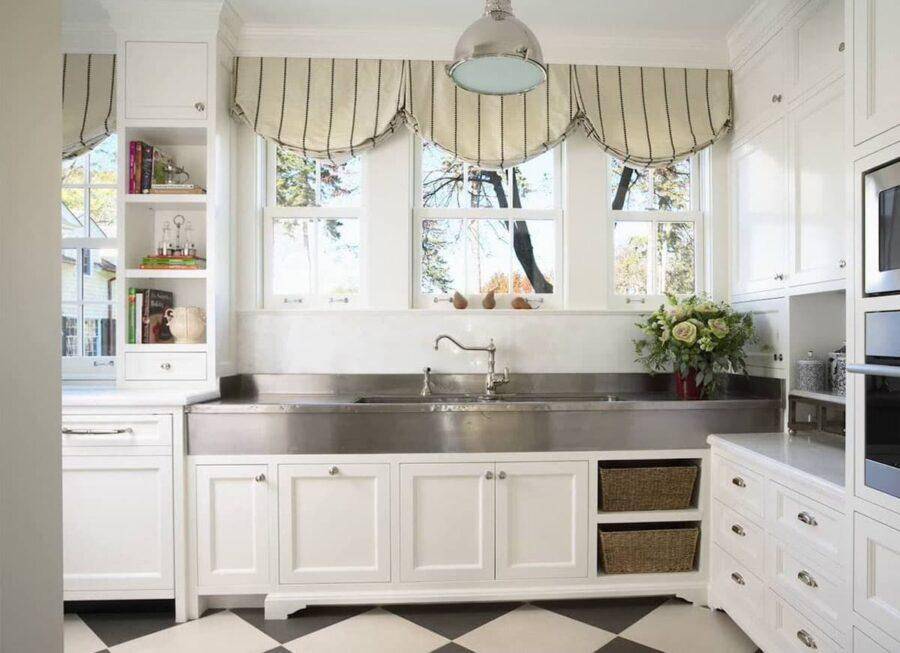 На кухне лучше всего использовать нейтральный тон. Сплошной белый или почти белый является отличным выбором, так как они будут дополнять любые новые столешницы или приборы, которые вы можете приобрести в будущем. И темные тона также хорошо работают. Занавески – сложная часть общего дизайна атмосферы кухни: если не сделано правильно, они могут буквально стать больным местом, которое не привлекает внимания и разрушает идеальную кухню. Элегантная простота-это сочетание традиционных и современных элементов, поэтому занавески должны следовать той же философии.