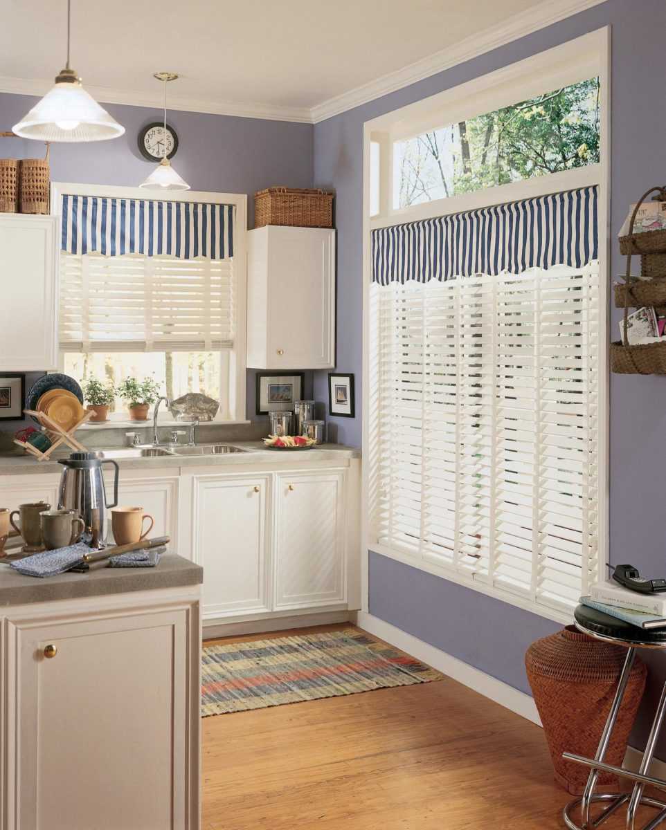 Если вы из тех, кто любит совмещать традиции с современностью в дизайне интерьера, вам обязательно понравится сочетание штор для кухни с современными металлическими или деревянными жалюзи. Хотя на первый взгляд это решение может показаться ошеломляющим, на самом деле оно выглядит очень хорошо, особенно если в комнате есть большие окна.