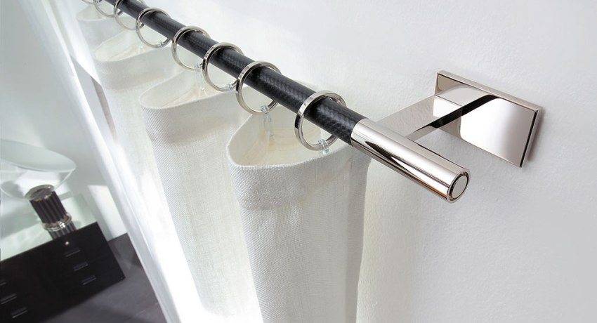 Металлические настенные перекладины с лаконичными наконечниками, с покрытием «черный металлик» — хит сезона стилистики минимализма.