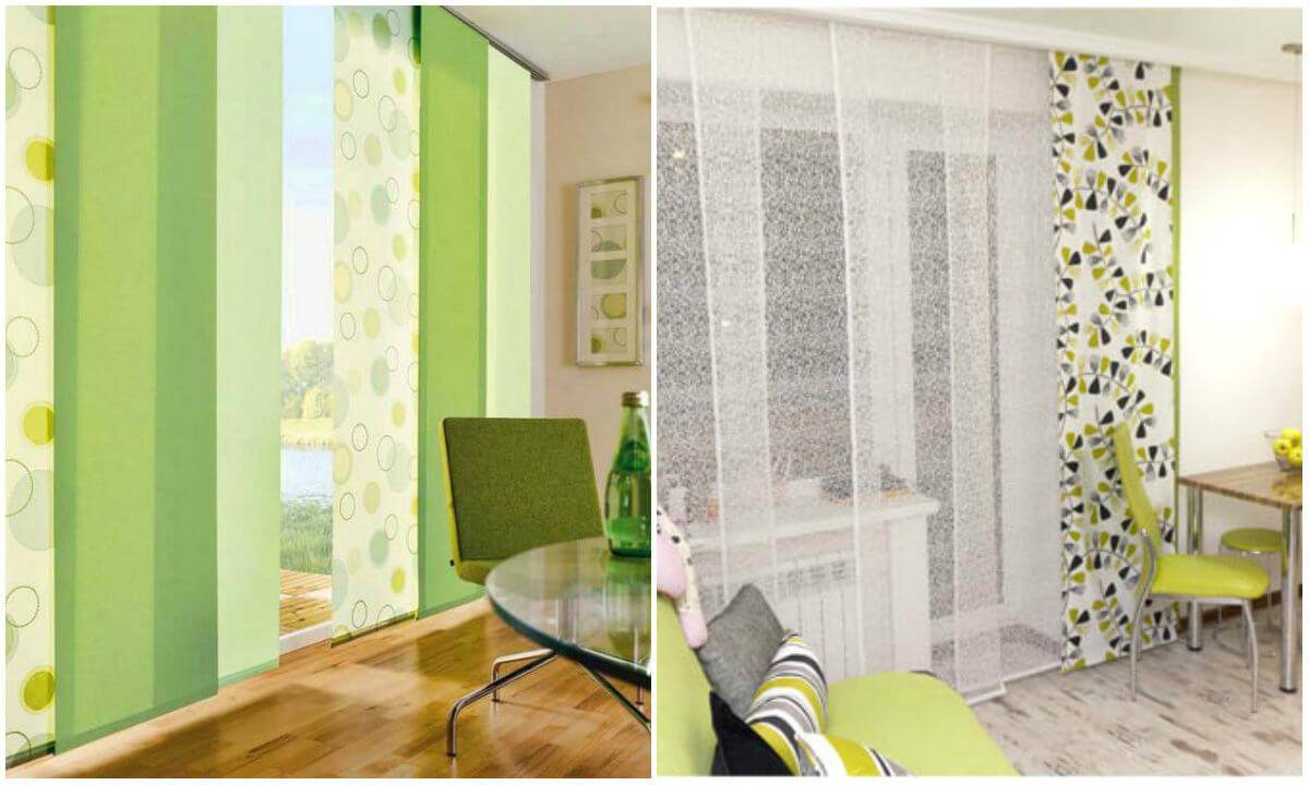 Это тонкие и длинные полоски ткани. Могут применяться для оформления окон, а также создания отдельных зон помещения кухни-гостиной.