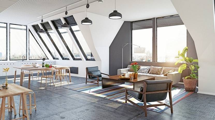 Важно понимать и такой нюанс, как ограниченность светового потока, поступающего через мансардные окна. Как правило, сами проемы в мансарде небольшие, а потому освещенность данного помещения практически всегда недостаточная