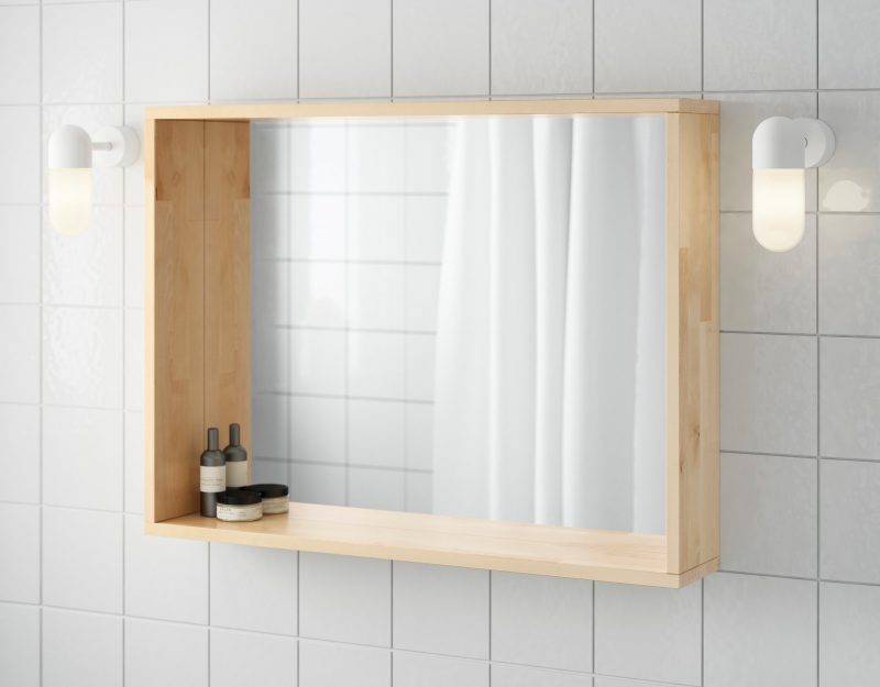 Для ванной подходят зеркала настенного стиля. Как раз «Икеа» предлагает широчайший ассортимент выбора: