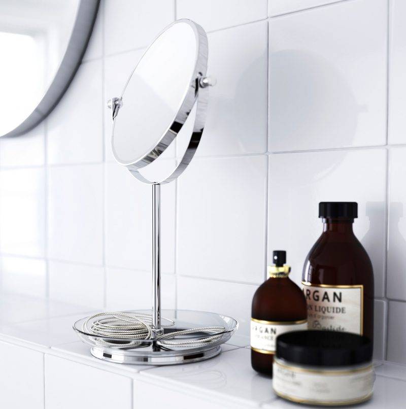 Сторйорм — зеркало икеа с подсветкой. Светодиодная лампа излучает дневной свет, что приносит удобство в использовании зеркала как днем, так и вечером.