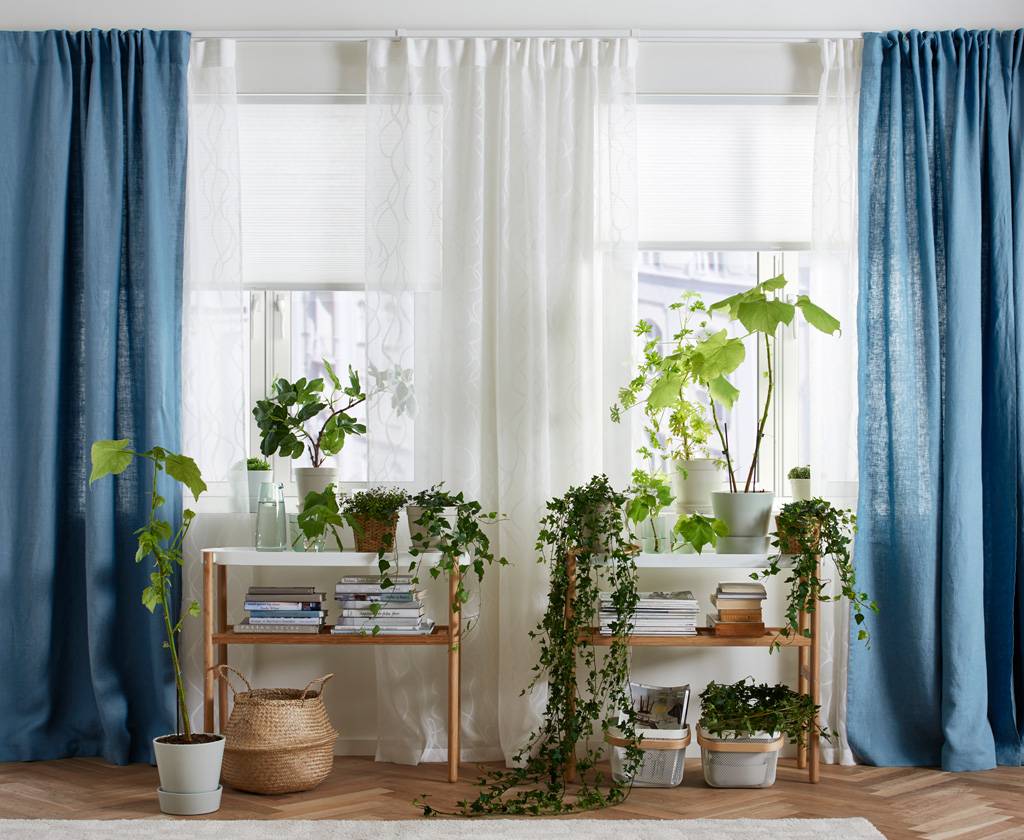 - Полноценный выбор. Прозрачные или блокирующие свет, однотонные или с оригинальным орнаментом, одинарные или двойные, с прихватом и без – у ИКЕА найдется все.