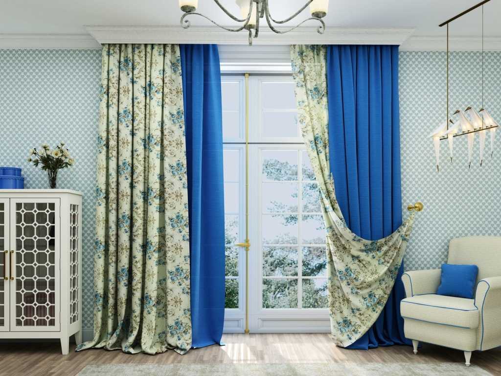 - Если комната оклеена пестрыми обоями, подойдут однотонные средней плотности шторы на двери и окна с мягкой драпировкой – «гармошкой»;