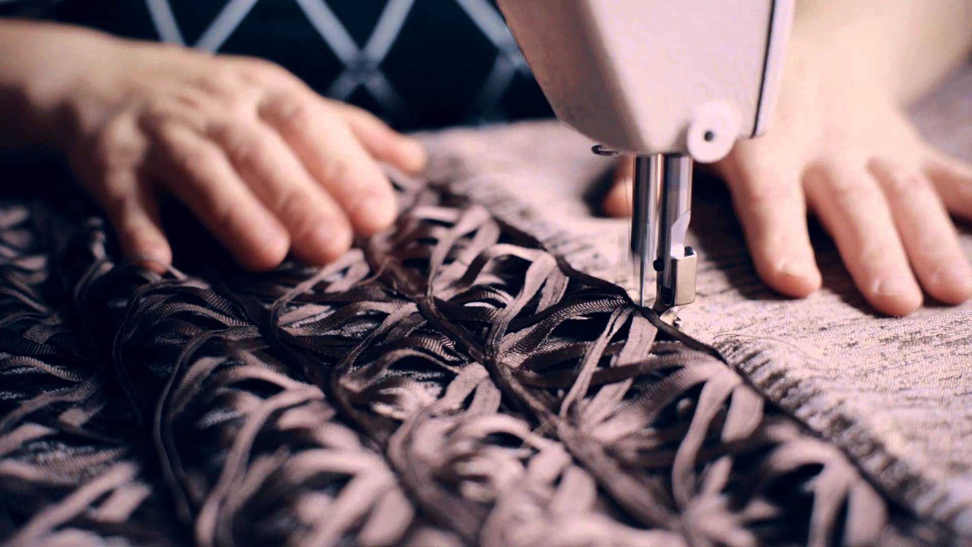- Обрабатывают верх, низ полотен. Для этого края подгибают, прострачивают на машинке.