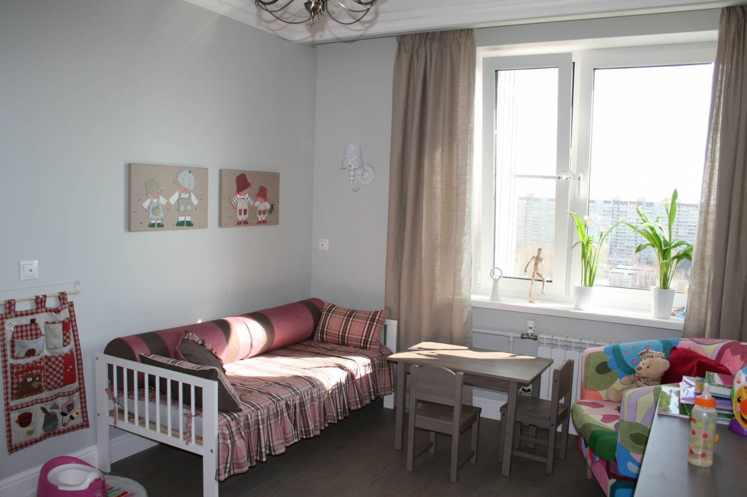 В детской комнате шторы длиной на сантиметр и выше от пола использовать лучше, чем гардины длиной в пол. Это не всегда эстетично, но безопасно для ребёнка.