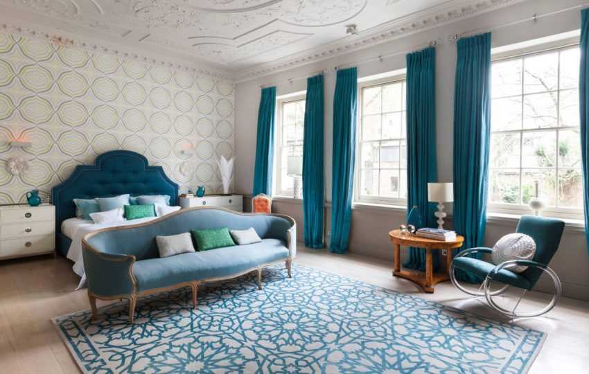 Стиль гламур, однако, позволяет представить этот элемент и добавить исключительную изысканность и элегантность в интерьер. От интенсивных цветов штор не нужно отказываться и в современном минималистском интерьере, однако здесь делают ставку на простоту и ровные геометрические узоры.
