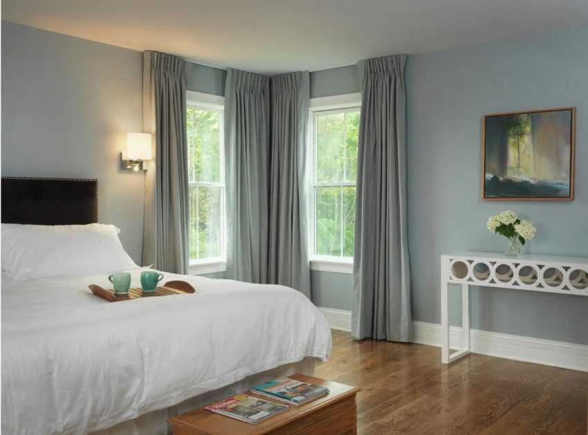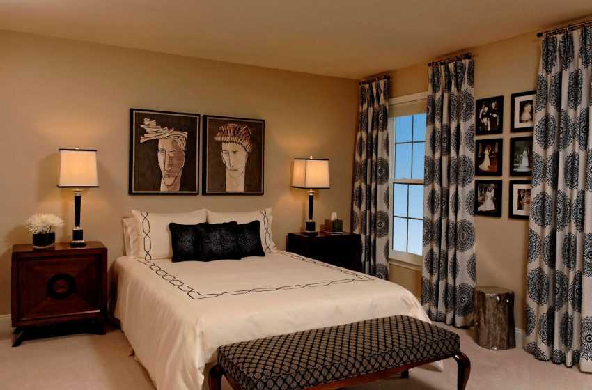 - цвет штор должен быть на тон светлее или на тон темнее стен или общей цветовой гаммы спальни;