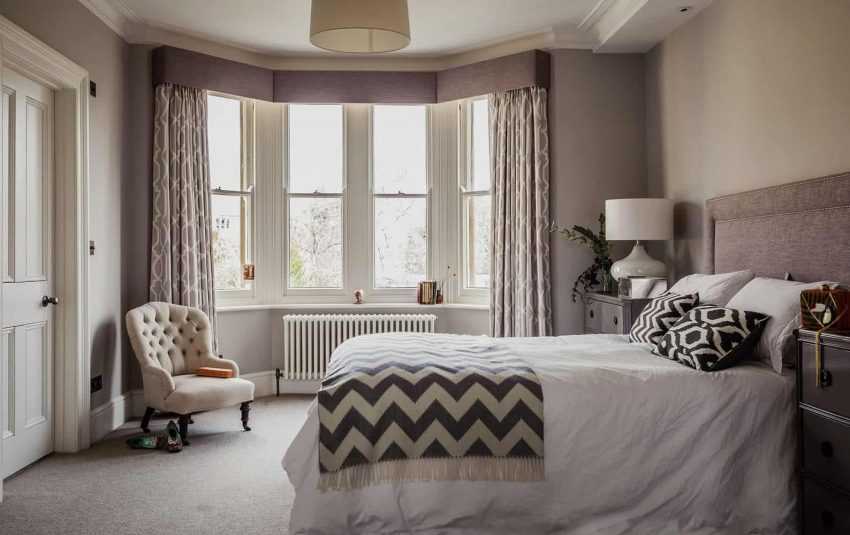Оконный декор — привычный и практичный аксессуар, без которого интерьер спальни выглядит неполноценным