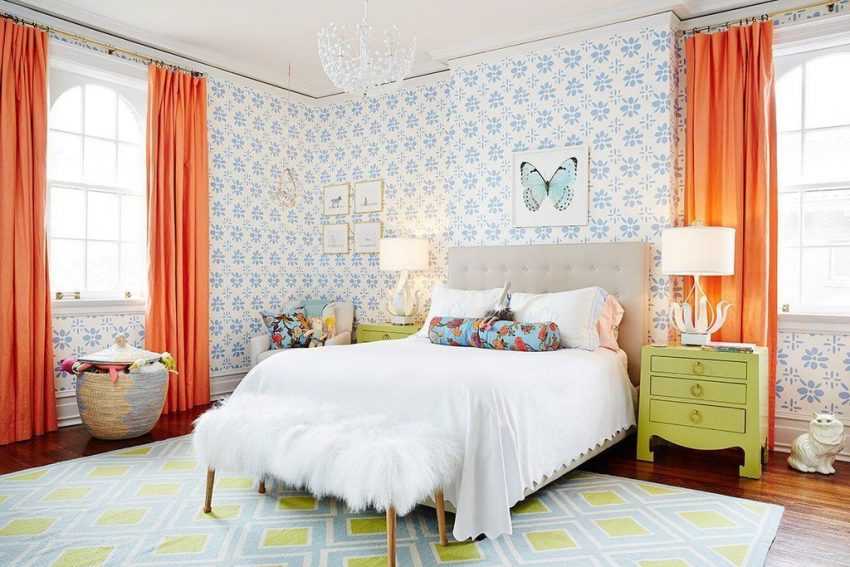 Обои для спальни, как правило, выбирают спокойные, которые умиротворяюще действуют на психику и способствуют комфортному отдыху. Тогда почему бы не добавить яркость в интерьер, используя шторы? Они могут быть: