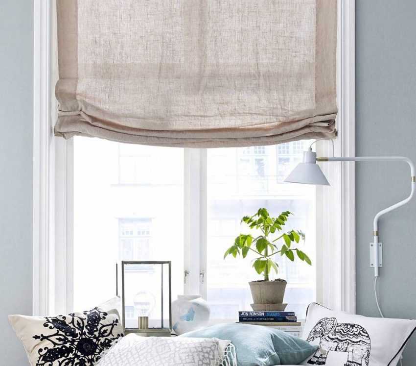 Развернутые римские шторы совершенно ровные, после сворачивания покрываются горизонтальными складками.