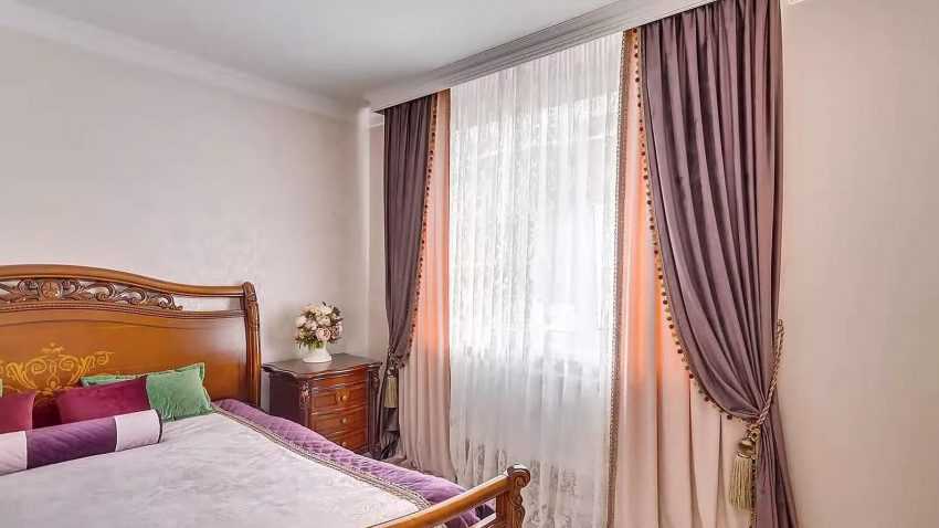 Их можно сшить из мягкой, но плотной ткани и повесить вместе с тюлем. В этом случае они будут играть роль основных штор, и защищать спальню от солнечного света.