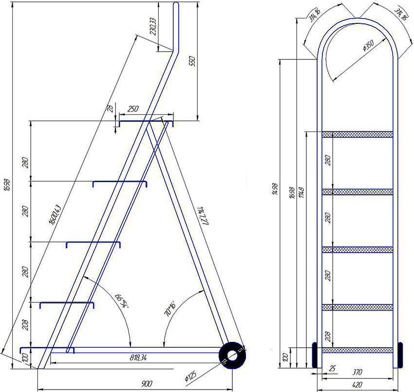 В принципе, изготовить своими руками стремянку несложно по любому чертежу. Главное, учесть все нюансы ее дальнейшего применения и правильно подобрать размеры всех элементов.