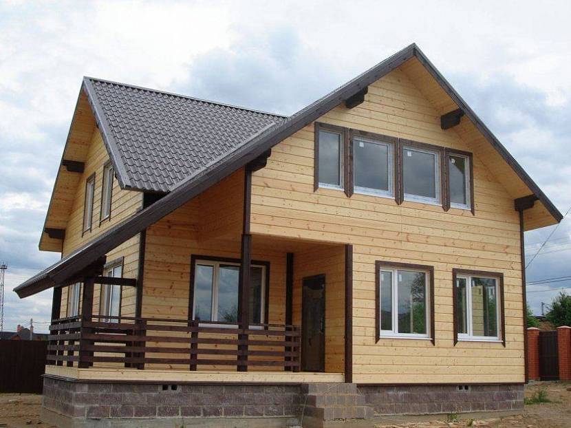 Каркасный дом с верандой и ломаной крышейИсточник kraust.ru