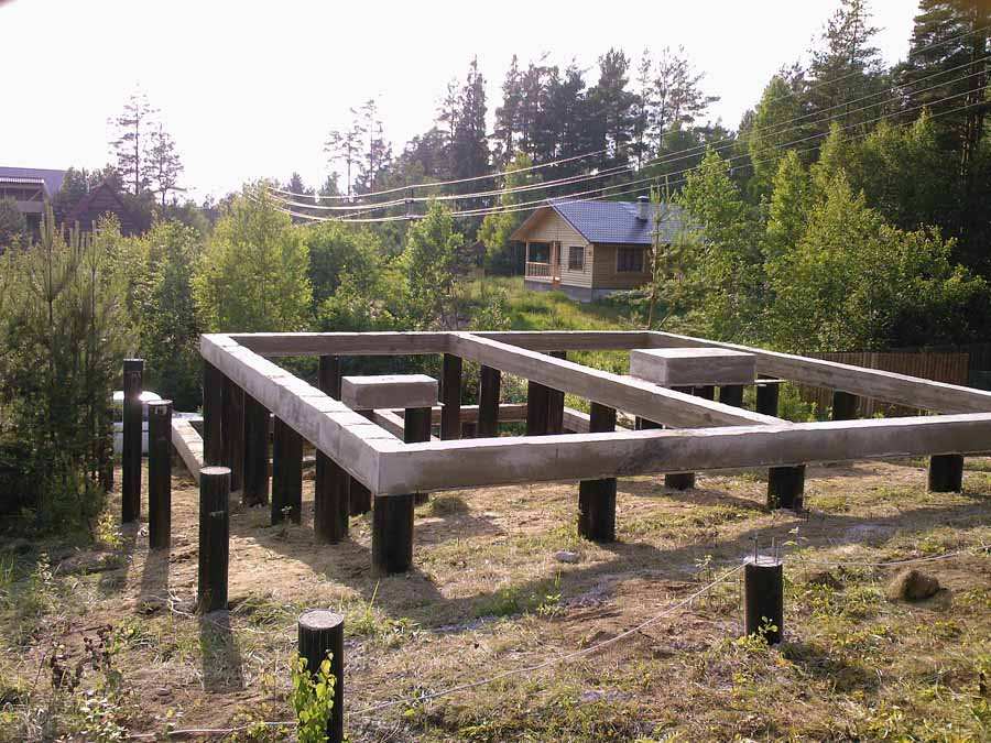 Бетонная обвязка — это практически полноценный аналог свайно-ленточного фундамента.