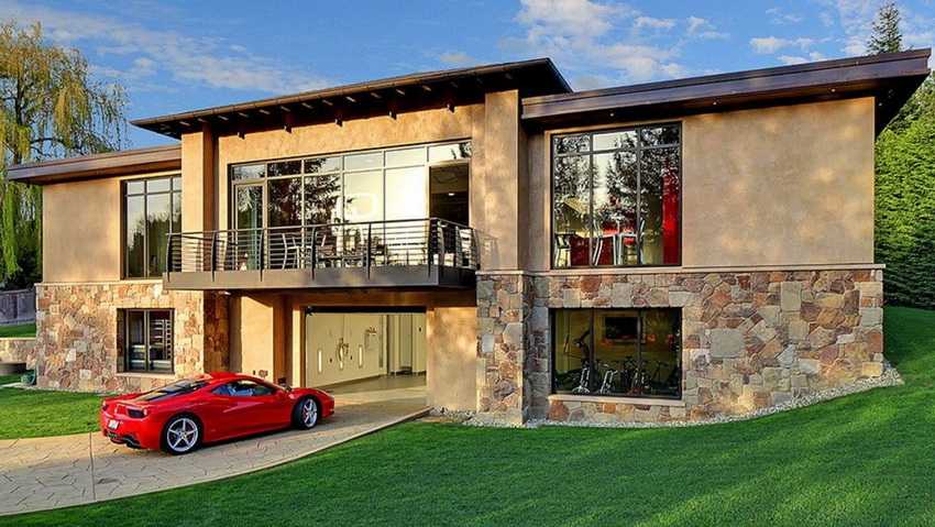 Небольшой коттедж с гаражом в цокольном этаже – выбор людей, стремящихся к удобству, экономии и комфорту. Дополнительные преимущества такой постройки в том, что для перехода в гаражное помещение не нужно выходить на улицу. Температурный режим в цокольном этаже даже без подогрева обычно значительно выше, чем в обычных гаражах, что способствует лучшей сохранности автомобиля.