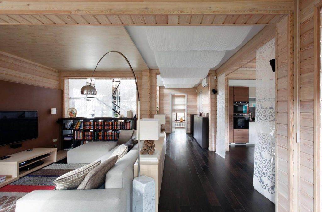 Интерьер дома из клееного бруса площадью 240 кв. м выполненный в европейском стиле