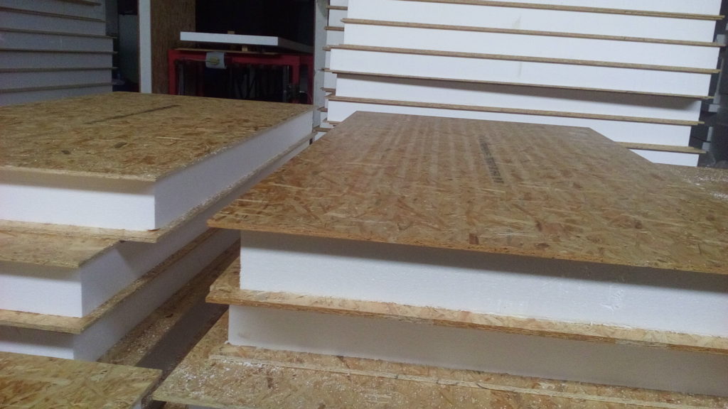 Спрессованная и склеенная под прессом древесная стружка образует ОСП ориентированно- стружечную панель. Они выступают как самые популярные составные для СИП панелей. Утеплителем в такой конструкции выступает наполнитель из полистирола. Такие составляющие придают панелям максимальную прочность и высокие показатели по монтажу, легкость и теплосохранение.