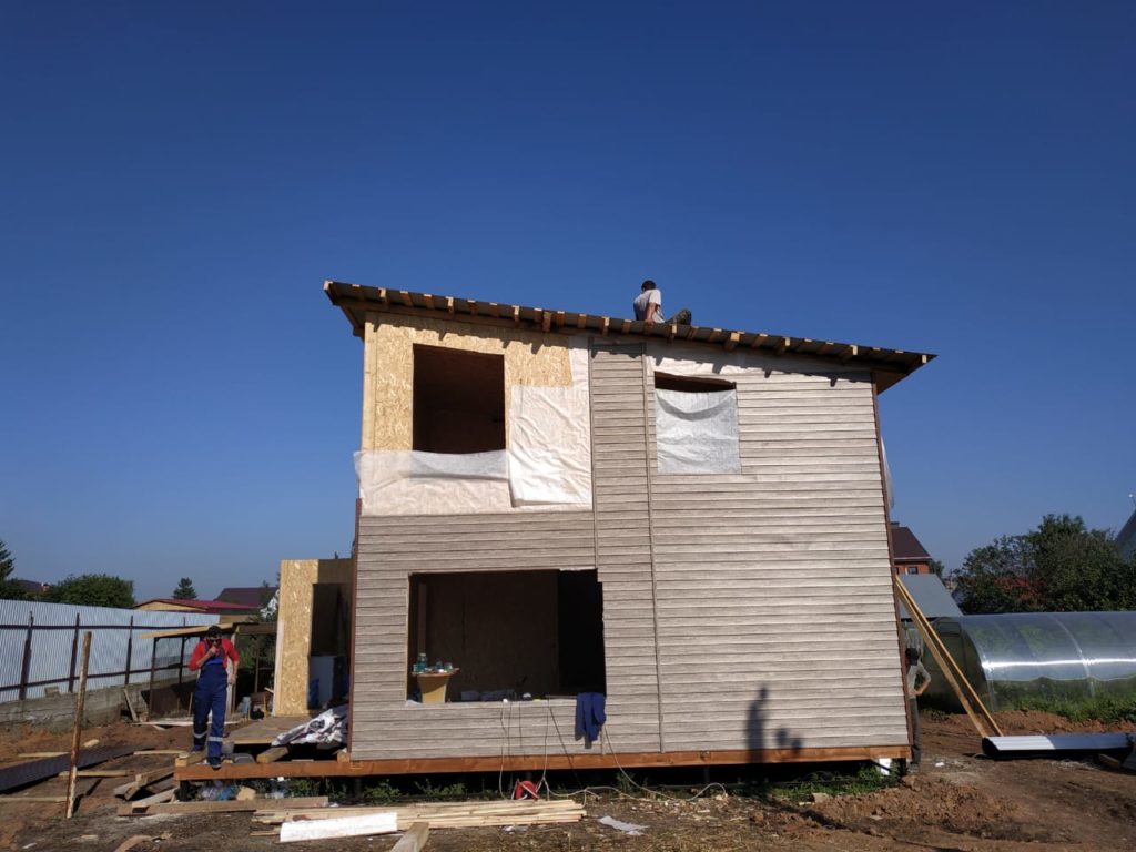 Монтаж дома из СИП панелей производится в течение 2-3 недель. Каркасная постройка к этому времени тоже приобретает законченный вид.
