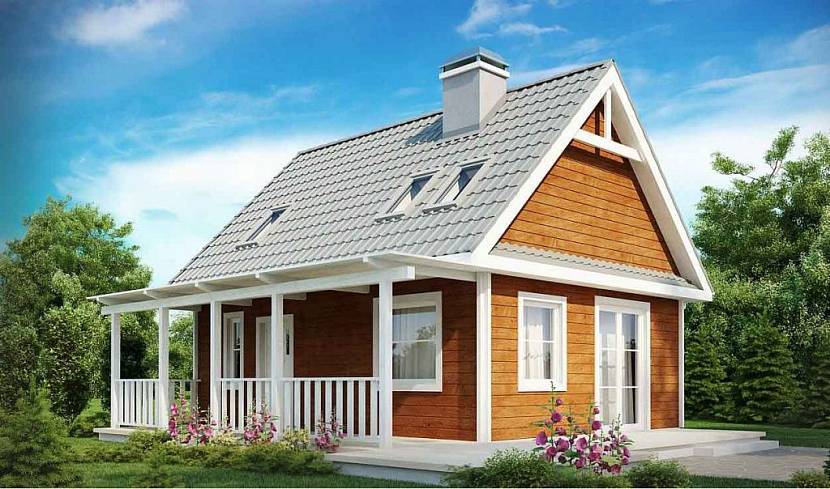 Дом с мансардой площадью 80 кв. м, который подходит для постоянного проживания. Такое строение оптимально для супружеской пары с детьми или молодой семьи, живущей вместе с родителями: внутри есть несколько спален, которые можно оборудовать под личные комнаты. За возведение такого дома строительные компании запросят порядка 1,3 млн рублей.