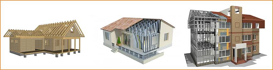 | Каркас этого дома состоит из деревянного материала. Этот каркас имеет самую низкую стоимость, примерно 6 тысяч рублей.Работать с этим материалом очень легко. Дерево отлично распиливается ножовкой или пилой, и скрепляется оно его обычной отверткой. Правда материал следует обрабатывать специальными растворами от гниения и пожара. | Этот каркас изготавливается из уголков или труб с квадратным сечением.Во время изготовления этого каркаса, используется тяжелые инструменты. Для того, чтобы сварить все элементы, необходимо использовать сварочный аппарат. Кроме этого, этот каркас очень дорогой, тонна трубы с квадратным сечением стоит около 40 тысяч рублей. Но металлические каркасы очень прочные, их срок службы достигает более 150 лет. | Это дома из легких стальных конструкций. Профиль, из которого изготовлены эти каркасы, очень легкий и он хорошо противостоит к воздействиям внешней среды.Этот материал разрушается очень долго, и поэтому срок службы у него достигает до 200 лет, а иногда и больше. Для того чтобы его разрезать можно использовать обычную ножовку, а для скрепления профилей применяются обычные саморезы, которые вкручиваются обычным шуруповертом. Стоимость его очень высокая, тонна этого материала стоит около 40 тысяч. |