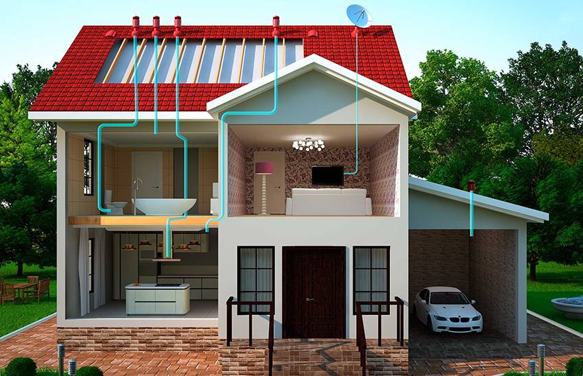 Вентиляция просто необходима на кухне и туалете. При этом благодаря особой конструкции дома, все элементы вентиляции можно скрыть за стенами.