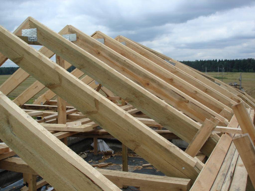 К мауэрлату прикручивают стропила саморезами или гвоздями, также их прикрепляют к потолочным балкам. В коньке можно соединить их с помощью деревянных накладок или металлических пластин. Коньковый брус после сборки стропильной системы можно убрать, а можно оставить. В первом случае к нему стропила не прикрепляют. После установки всех стропил на них прибивают обрешетку, сплошную или шаговую, это зависит от выбранного кровельного материала.