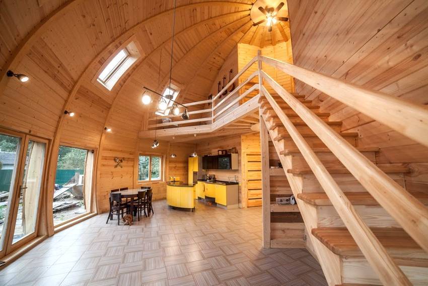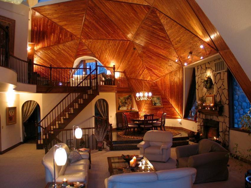 Купольные каркасные дома интересны своим необычным дизайном. Чаще всего во внутреннем оформлении нужно лишь дублировать некоторые элементы внешней стены, чтобы добиться впечатляющего эффекта. Однако эта особенность выдвигает и некоторые условия: