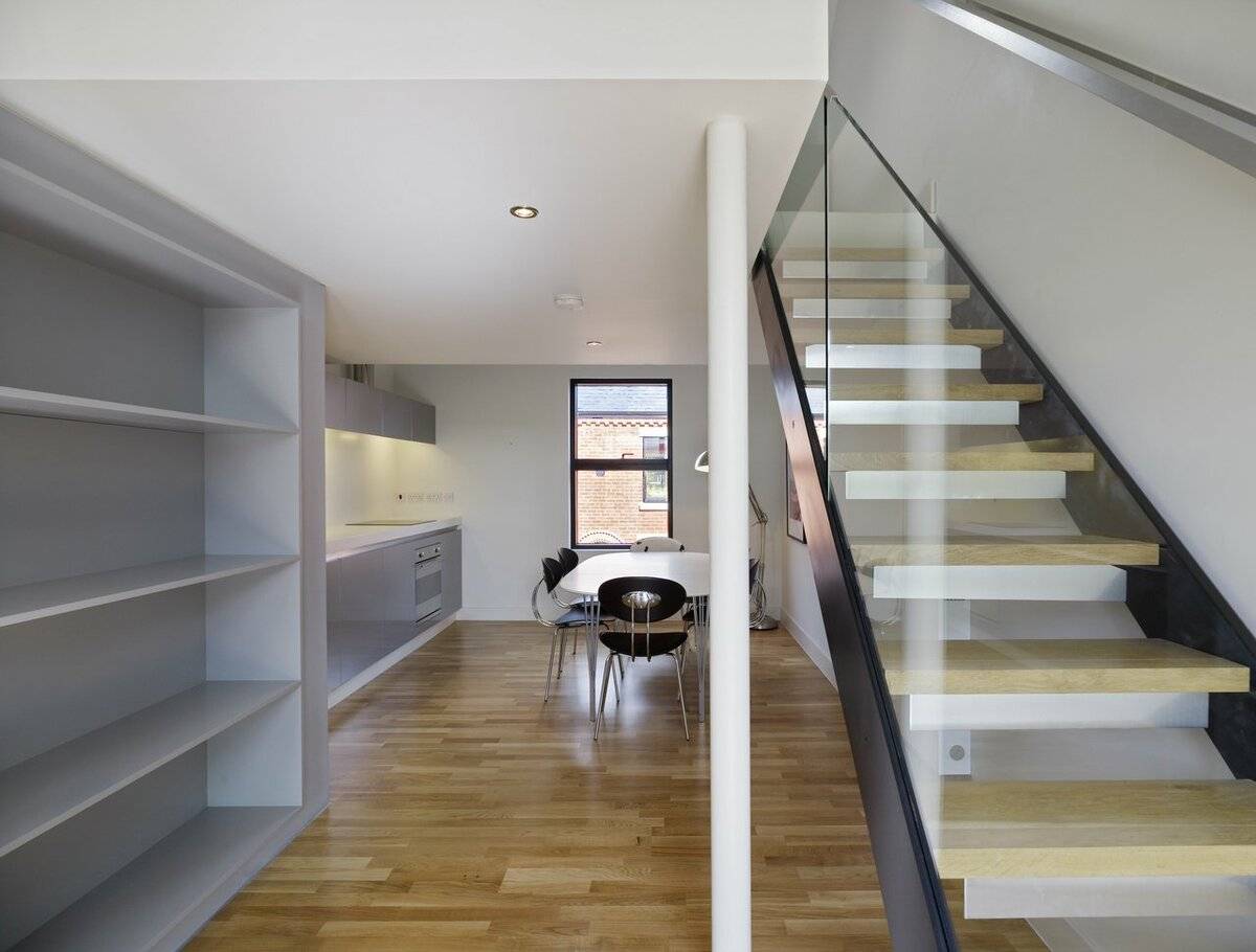 Материал лестницы зависит от вкусов владельца и особенностей коттеджа. Дерево дает малую нагрузку на дом и подходит в большинстве случаев. Металл, чаще всего, тоже. Но бывают исключения. С бетоном нужно искать дополнительную опору для правильного распределения веса.