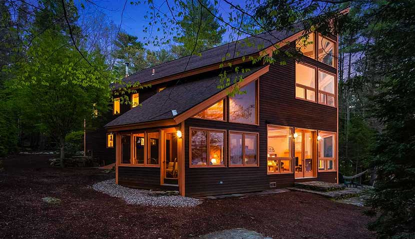 Дом с односкатной крышей, с окнами почти на всю стенуИсточник drevogid.com