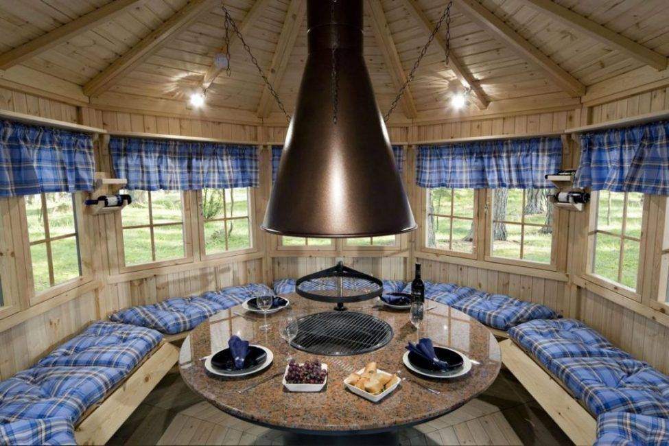 Не лишним будет и установка очага, в виде обычного мангала или уличного камина. Такой элемент может быть как перемещаемым, так и неподвижным, установленным на постоянное место.