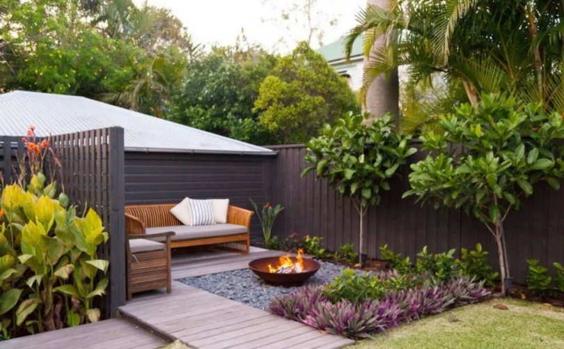 Обдумайте, какие материалы лучше использовать для ограждения внутреннего дворика: чаще всего применяется кованый металл, древесина и стекло (на участках в современном стиле). Ограждение может быть и естественным в виде живого забора — из растительности, высаженной по периметру участка и красиво подстриженной.