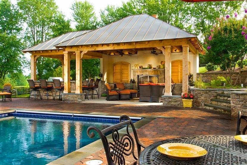 Мангальная зона возле бассейнаИсточник july-dom.ru
