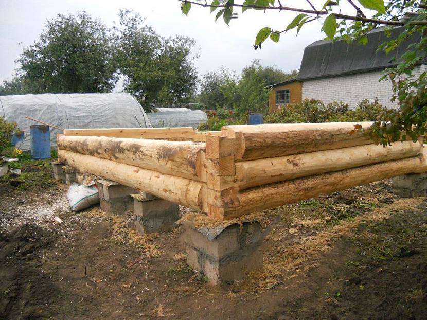 Рис. 1.1: Столбчатый фундамент из ФБС блоков с деревянным ростверком