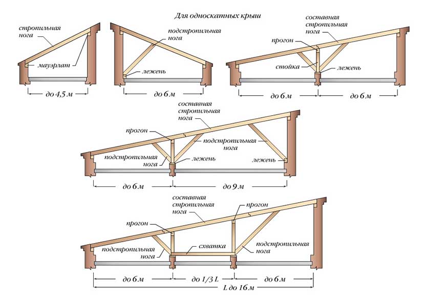 Виды стропильных систем на односкатной крыше