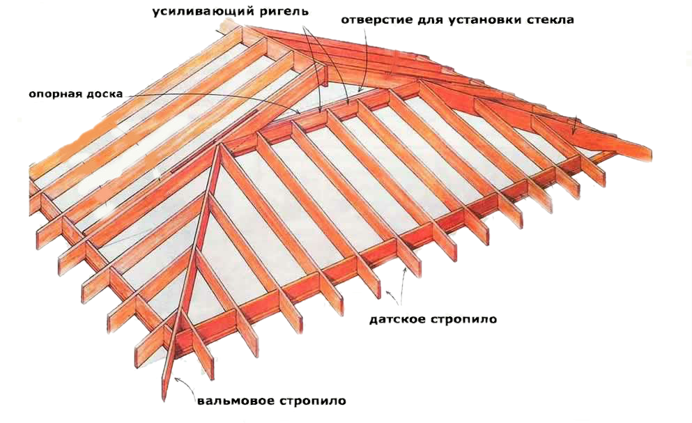 Стропильная система четырехскатной крыши: датской полувальмовой