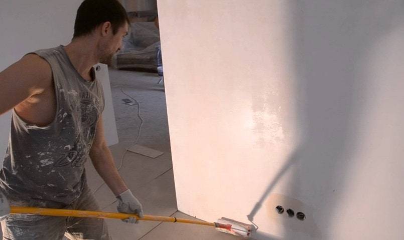 Операция грунтования в соответствии с технологией должна выполняться при сухой погоде и температуре окружающей среды около +15 градусов. Желательно обрабатывать стены с той стороны, где нет прямого попадания солнечных лучей.