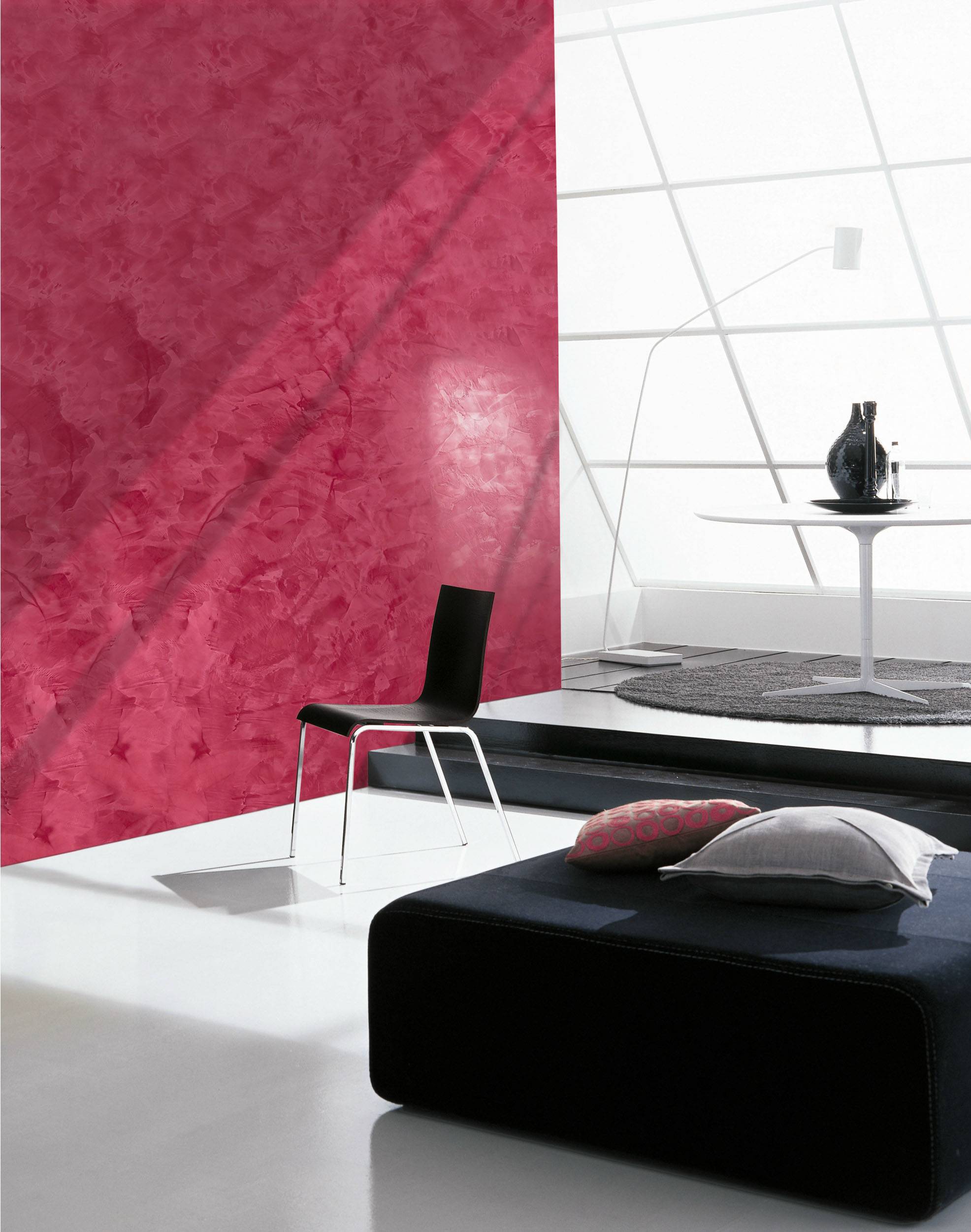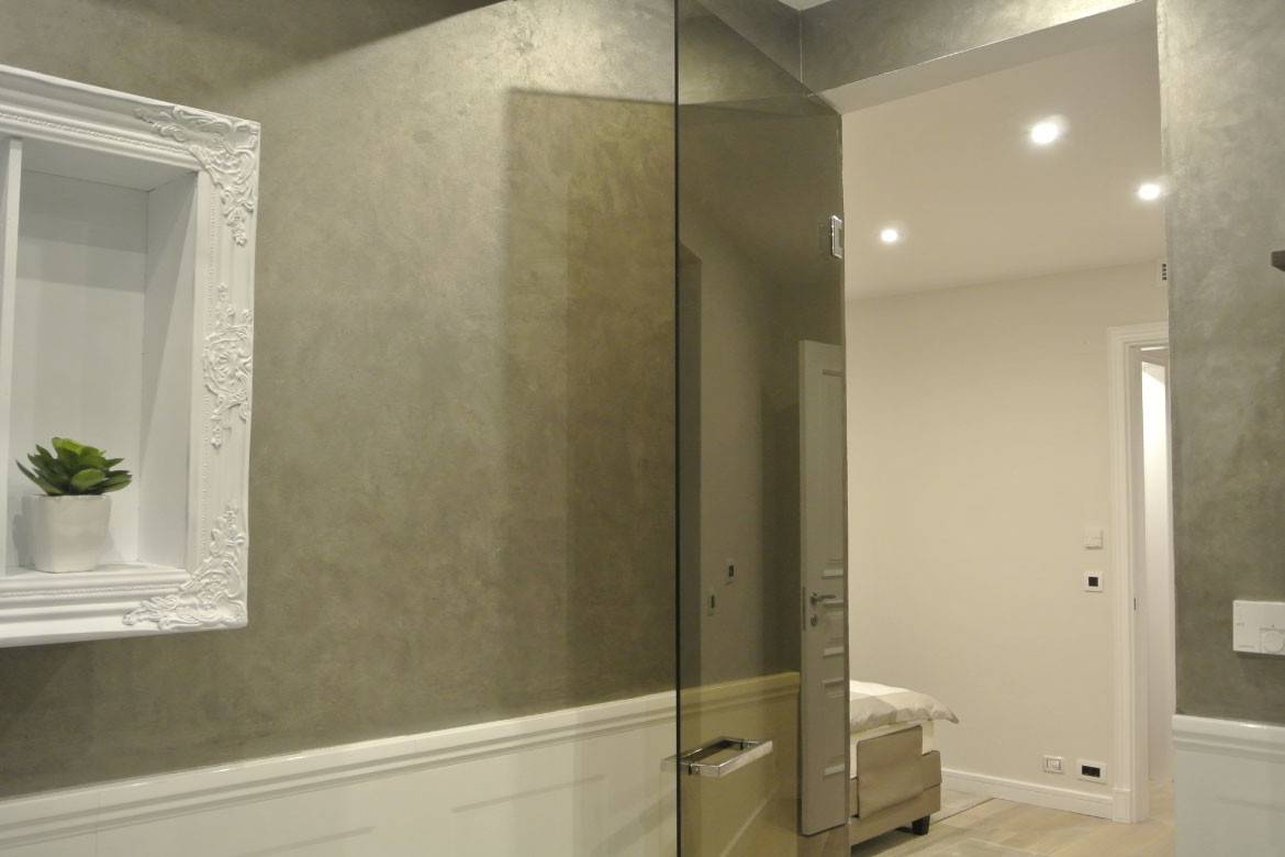 Смесь наносится на стены в несколько слоев короткими мазками шпателя в разных направлениях. При этом после нанесения каждого слоя его обязательно шлифуют и железнят. Верхний слой штукатурки покрывают воском или акриловой смесью, а затем полируют, создавая эффект полированного натурального камня. Такой вид штукатурки получил название «венецианка» или венецианская штукатурка.