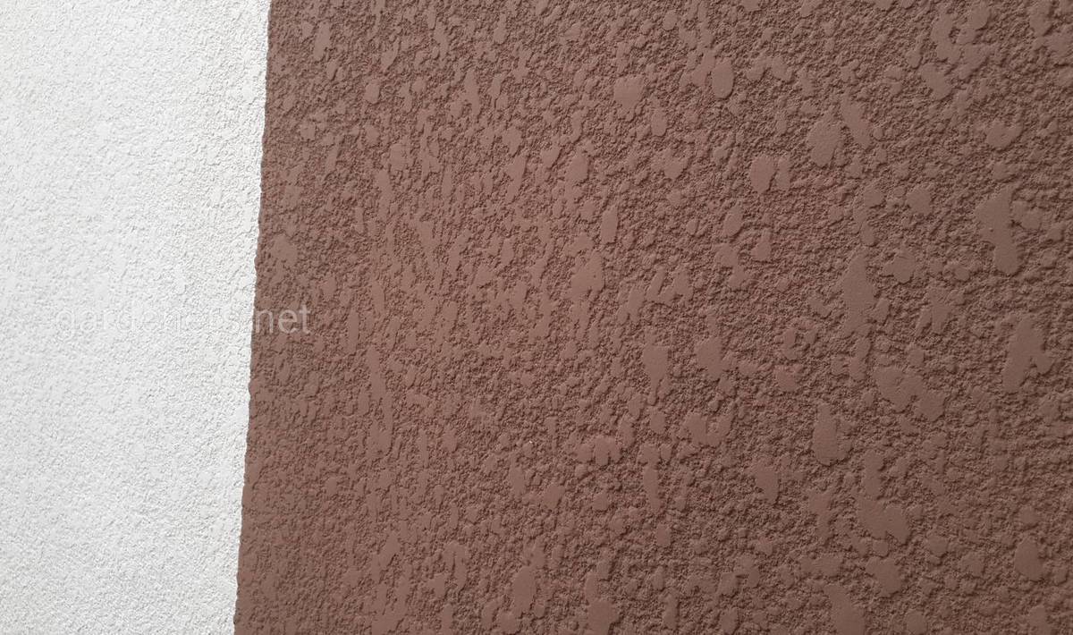 - Отделочную смесь кладут в 1 слой толщиной 2-4 мм, затем не дожидаясь высыхания по поверхности прокатывают валиком. В зависимости от размера ворса валика получается мелкая или крупная шуба.