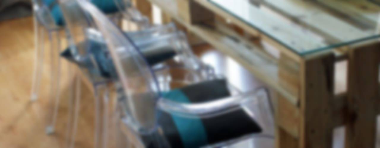 В квартирах-студиях обычно нет гостиных комнат, а обеденная и кухонная зоны совмещены. Сюда идеально впишутся креативные и необычные стулья для небольшого стола. Они же будут служить декором, поэтому можно фантазировать и выбирать яркие краски.