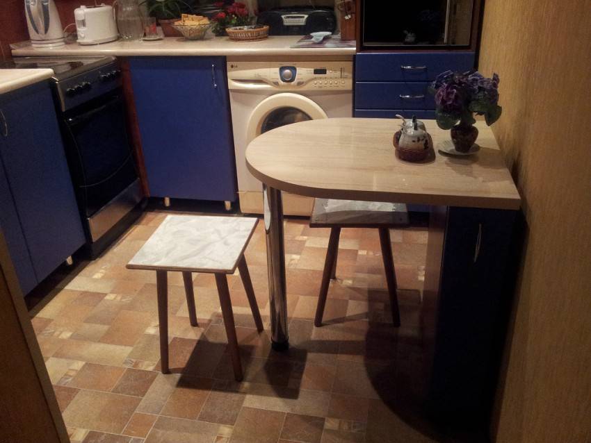 Если размеры кухни настолько малы, что даже самый компактный вариант не помещается, или дизайн и оформление помещения позволяют «играть» с обстановкой, можно попробовать такое необычное решение, как выбрать кухонный стол для интерьера кухни … без стола. На первый взгляд звучит бессмысленно, тем не менее подобные реализации существуют.