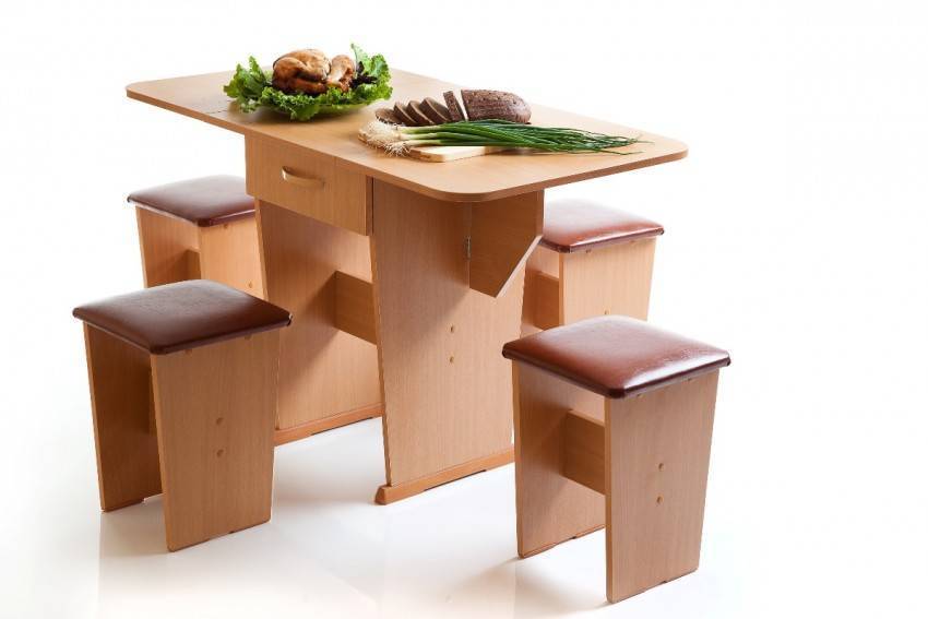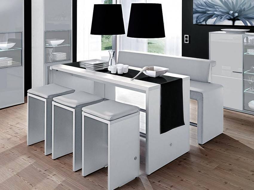 Есть и отдельные предложения для тех, кто испытывает дефицит пространства – раскладные и складываемые стулья, трансформеры. В малометражных помещениях часто практикуется замена громоздкого сиденья на табуреты, пуфы, угловые и прямые диваны.