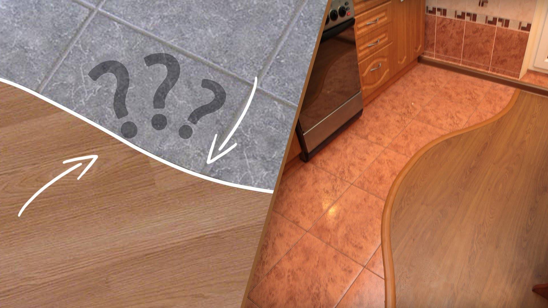 При оформлении стыка ламината и плитки без порожка для начала решается проблема с перепадом высот между материалами.