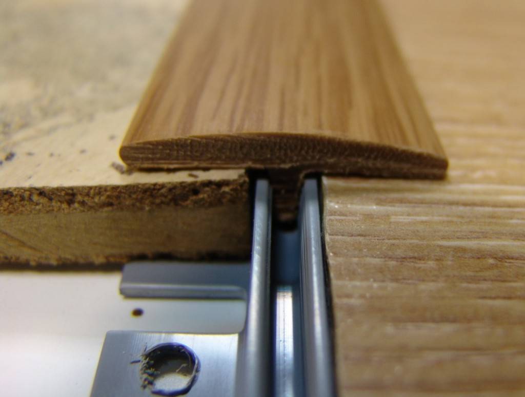 - порог, установленный на стыках двух видов напольных покрытий, защищает место соединения от пыли и влаги, предотвращает деформацию материалов;
