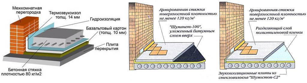 Варианты шумоизоляции пола под стяжку для обычного и плиточного настила