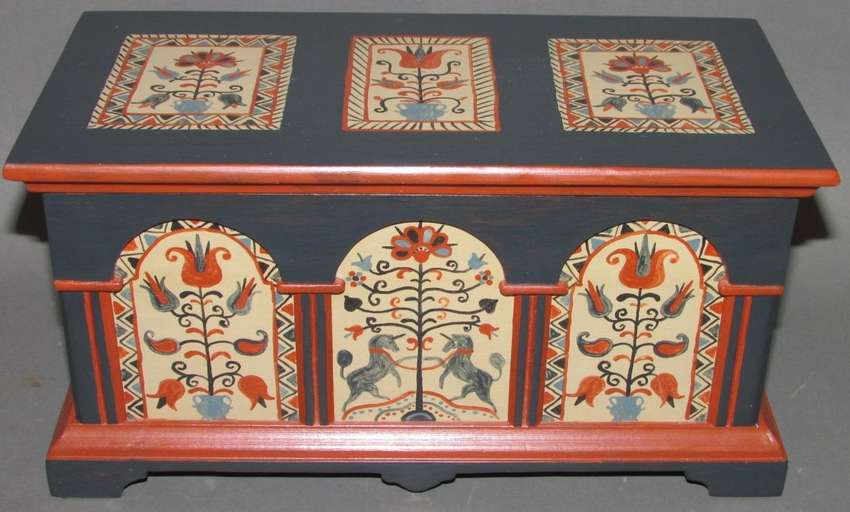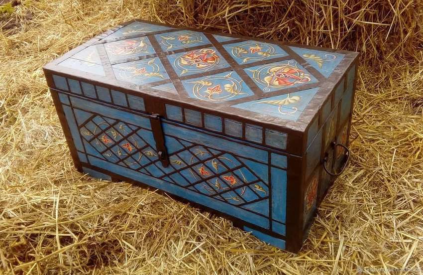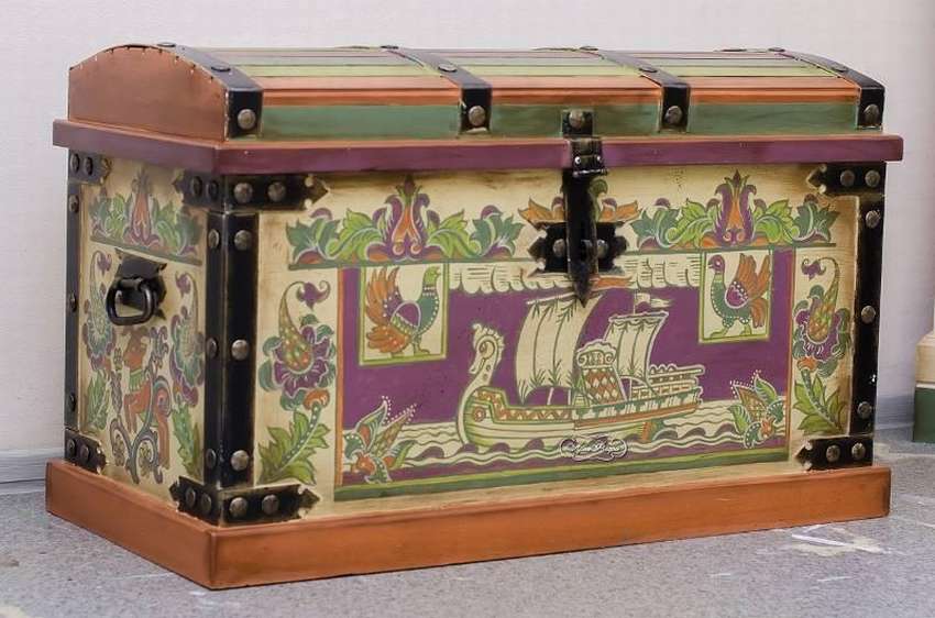 Можно декорировать небольшую часть сундука, а можно и весь, нанеся изображение со всех сторон. Ценность такого сундука возвышается, как и его стоимость.
