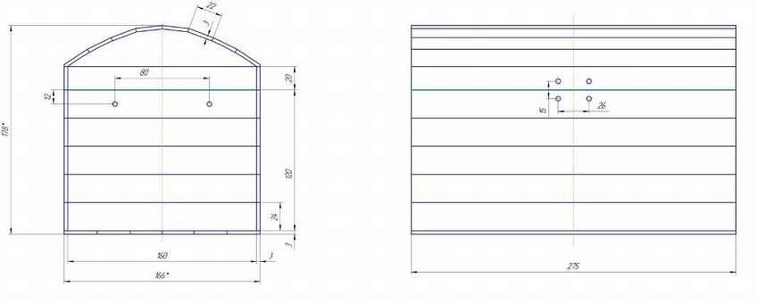 Если крышка плоская как на этом чертеже, то на ее изготовление уйдет намного времени, чем на изготовление полукруглой крышки.