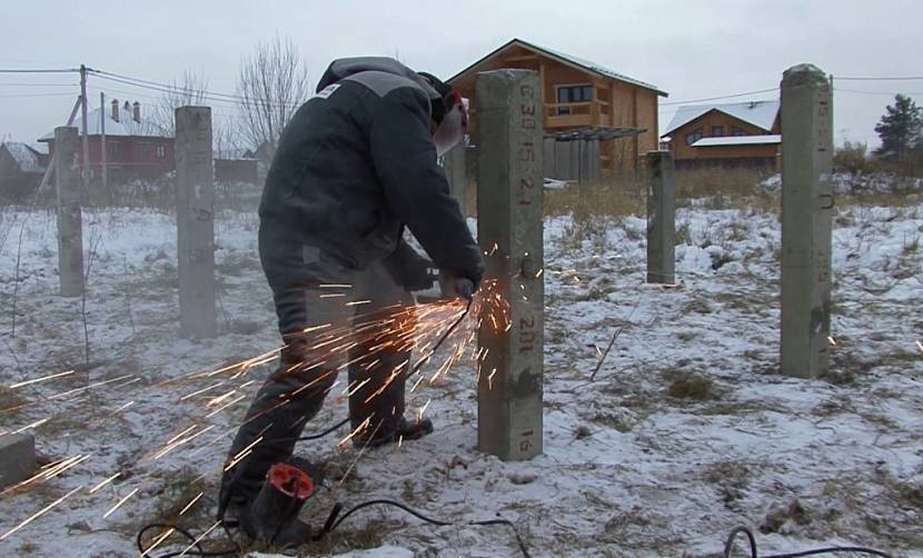 Забетонировав скважины, им предоставляется время для полного высыхания. Как правило, для этого требуется около двух недель. После этого болгаркой можно отрезать лишние части труб, создавая ровную поверхность.